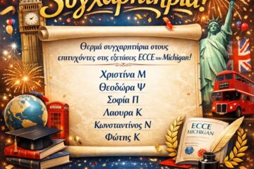 Σε όλους τους μαθητές μας που συμμετείχαν στις εξετάσεις Michigan και Hellenic American Union επιπέδων Β1 (pre-Lower) – B2 (Lower) – C2 (Proficiency)για την επιτυχία τους